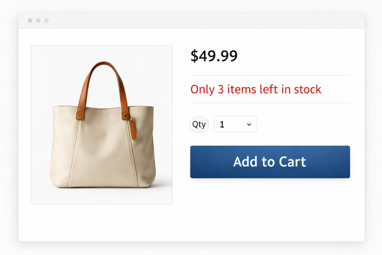 • Examples: “Only 3 left in stock” or “Limited Edition” tags.