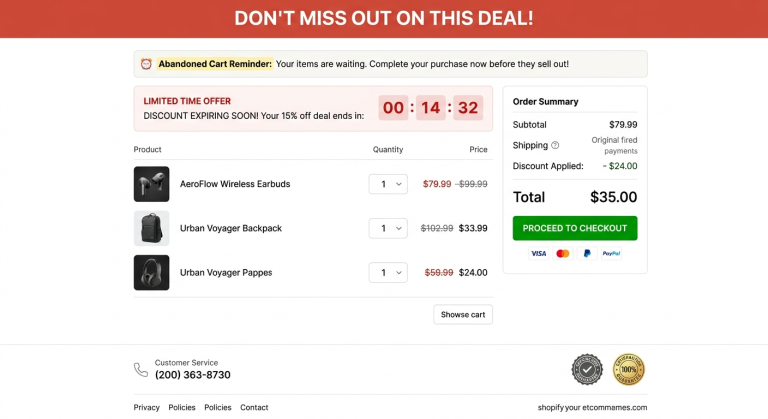 • Placement: Use high-contrast countdown timers on your cart page or header bar to keep the deadline top-of-mind.