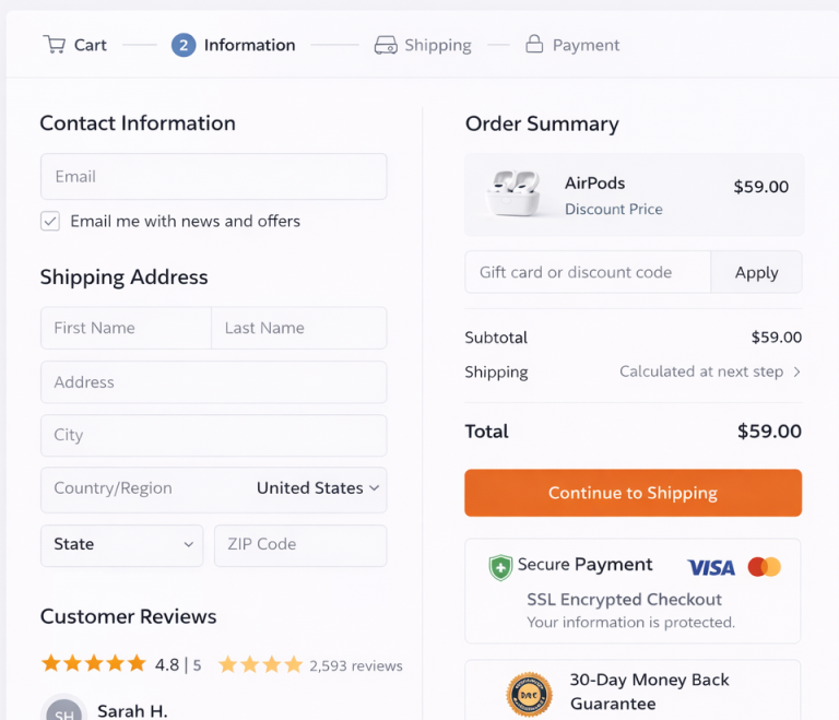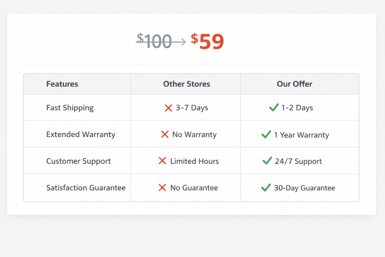 • Price Anchoring: Showing a “Strikethrough Price” ($100 ~~$150~~) makes the current price feel like a massive win.